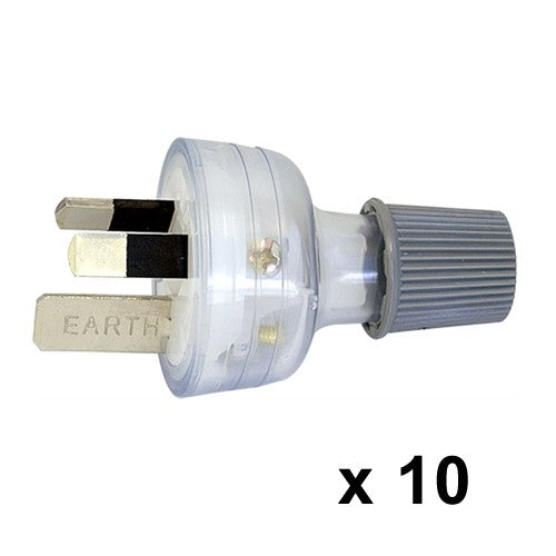 10 x 10 Amp 3 Pin Male Extension Plug Lead Clear 240v