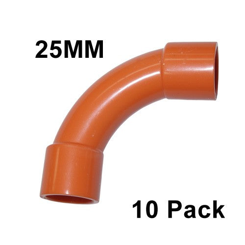 10 x 25mm Orange Rigid PVC Solid Elbow Bend