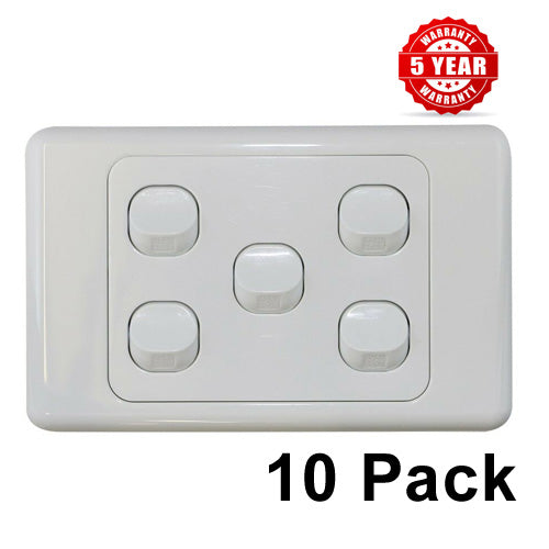 10 x 5 Gang Single Wall Switch - 2 Way Switching-SAA