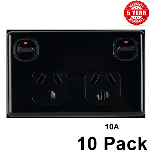 10 x Double Power Point Classic BLACK 10 Amp 240 Volt