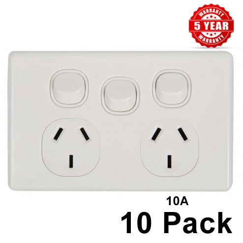 10 x Double Power Point With Extra Switch 10 Amp SLIMLINE