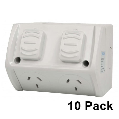 10 x Weather Proof Double Power Point Outlet IP53 Rated 10 Amp
