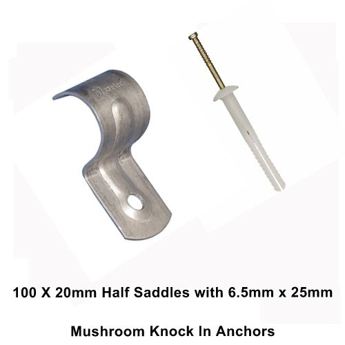 100 x 20mm Half Saddle with 6.5mm x 25mm Mushroom Knock In Anchor for Conduit
