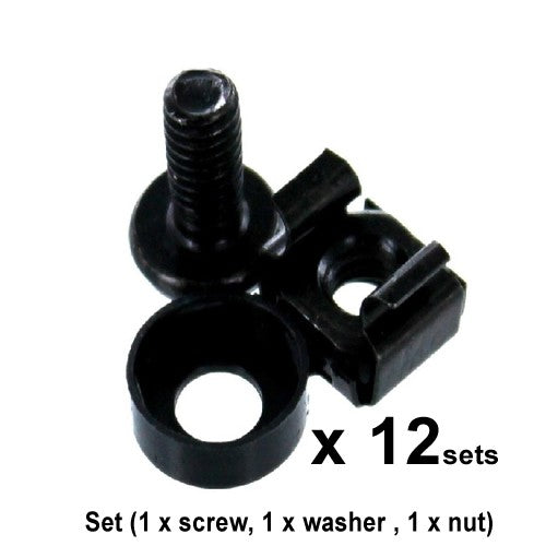 12 x M6 Bolts Screws Set with Captive Nuts & Washers for 19" Inch Rack Mount