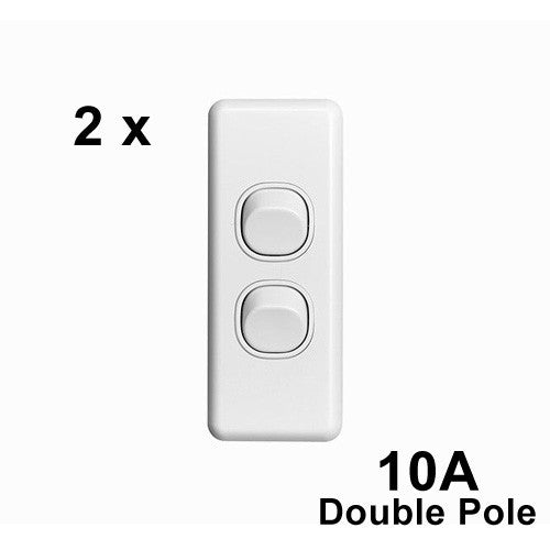 - 2 Gang Architrave Light Switch Slimline Double Pole 240V 10A