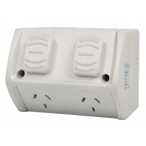 2 x Weather Proof Double Power Point Outlet IP53 Rated 10 Amp