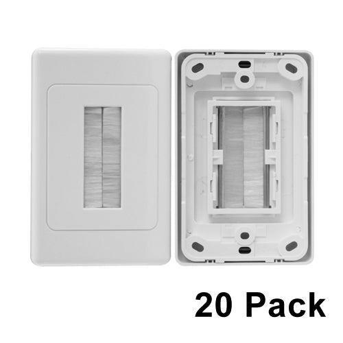 This brush wall plate allows cables to enter the wall cavity space without the need of interconnect wall plates in between. Ideal for pre-made leads directly out of the wall cavity.
