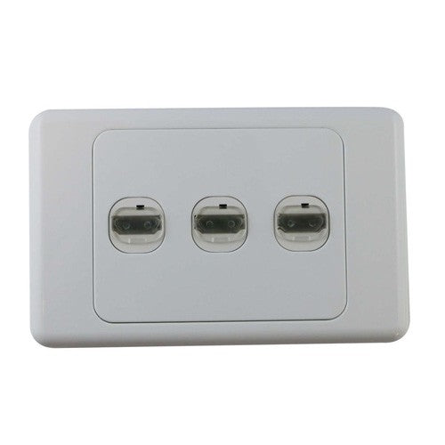 3 Gang HDMI Cable Wall Plate White with 3x Right Angle Outlets Sockets