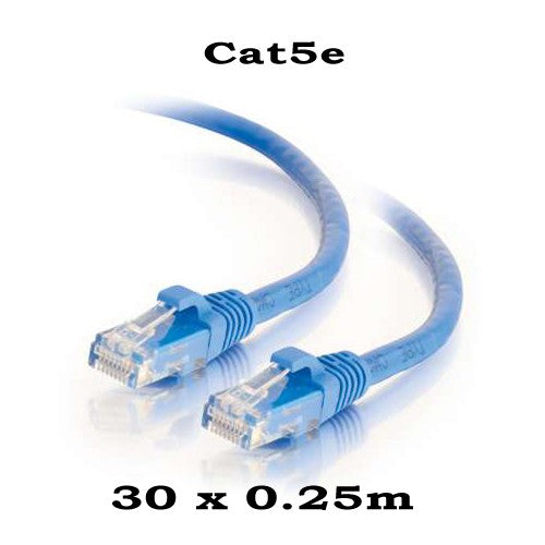30 x Cat5e Patch lead 0.25m-Blue,Purple,Red,Yellow