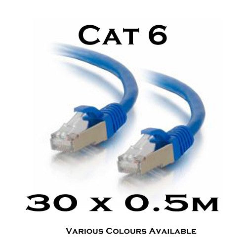 30 x Cat6 Patch lead 0.5m (Various Colours)