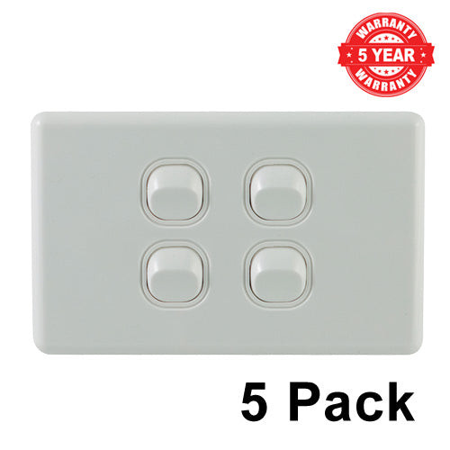 4 Gang Classic Single Light Switch - 5 Pack