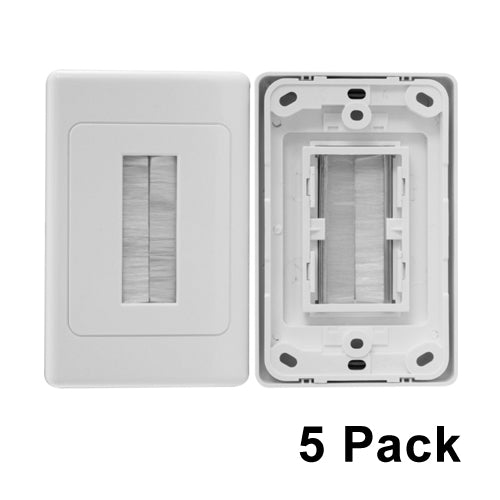 This brush wall plate allows cables to enter the wall cavity space without the need of interconnect wall plates in between. Ideal for pre-made leads directly out of the wall cavity.