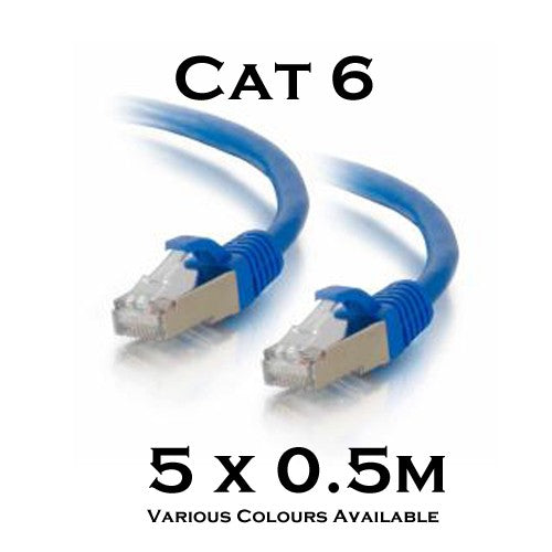 5 x Cat6 Patch lead 0.5m (Various Colours)