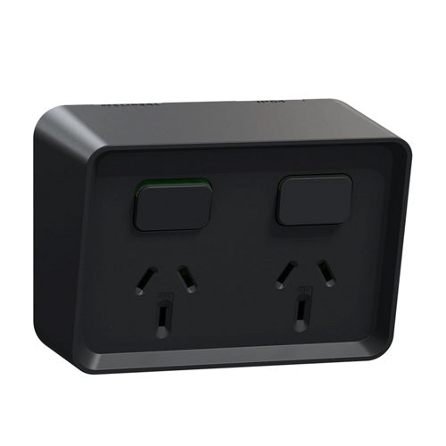 Clipsal Iconic 03025BK Double Weatherproof Power Point 10AMP BLACK