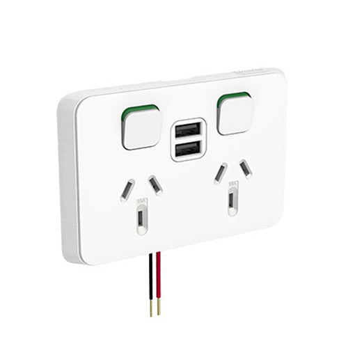 This Clipsal Iconic Double Power Point with twin dual A Type USB outlet combines modern conveniences and contemporary style. Interchangeable skins allow for a custom and versatile look.