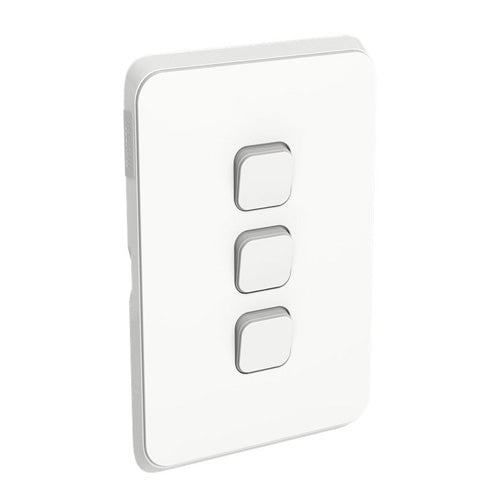Clipsal Iconic Vivid White 3 Gang Vertical Light Switch 10Amp Mech 3043VA-VW