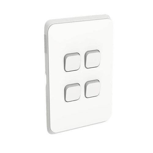 Clipsal Iconic Vivid White 4 Gang Vertical Light Switch 10Amp Mech 3044VA-VW