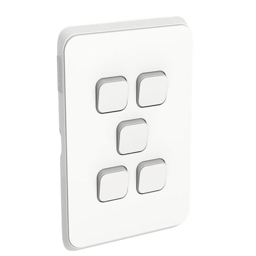 Clipsal Iconic Vivid White 5 Gang Vertical Light Switch 10 Amp Mech 3045VA-VW