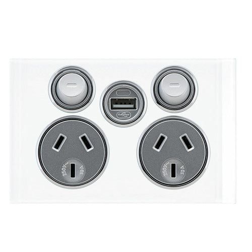 Clipsal Saturn 4025USBC-PW 10A DOUBLE POWER POINT C/W USB PURE WHITE