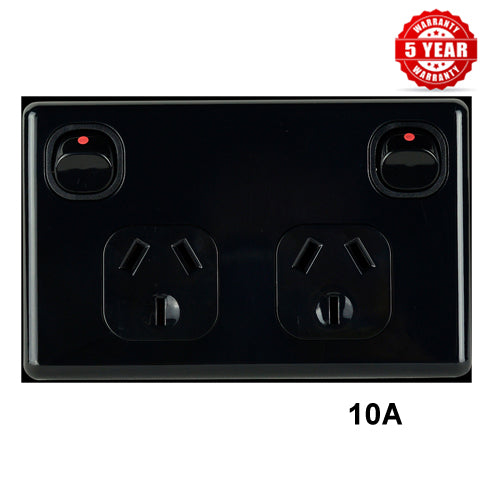 Double Power Point Classic BLACK 10 Amp 240 Volt