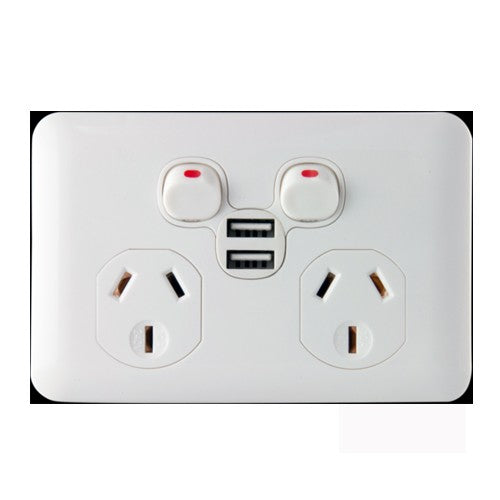 - Australia's Only Slimline Wafer Series Double GPO with Twin USB Charging Ports.