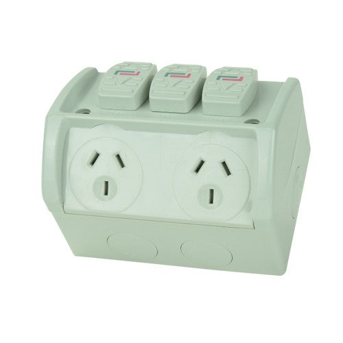 - Weatherproof Double Power Point with Extra Switch (3 Gang)