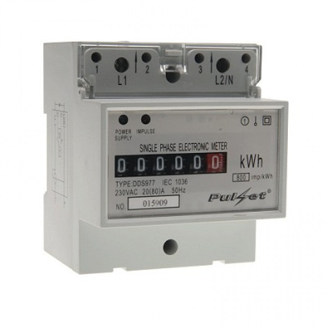 - Din mount single-phase kilowatt hour meter that measures AC loads with a rated frequency of 50Hz.