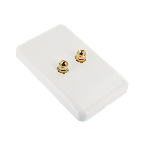 This wall plate allows the connection of 1 speaker. The perfect solution to keep things looking good when running cables through the walls, floor or ceiling in your home theatre system.