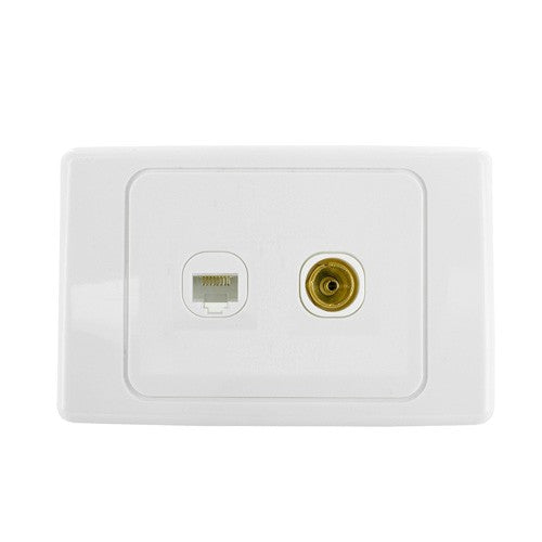 TV Wall Plate 1 x RJ45 1 x TV - 2 Gang